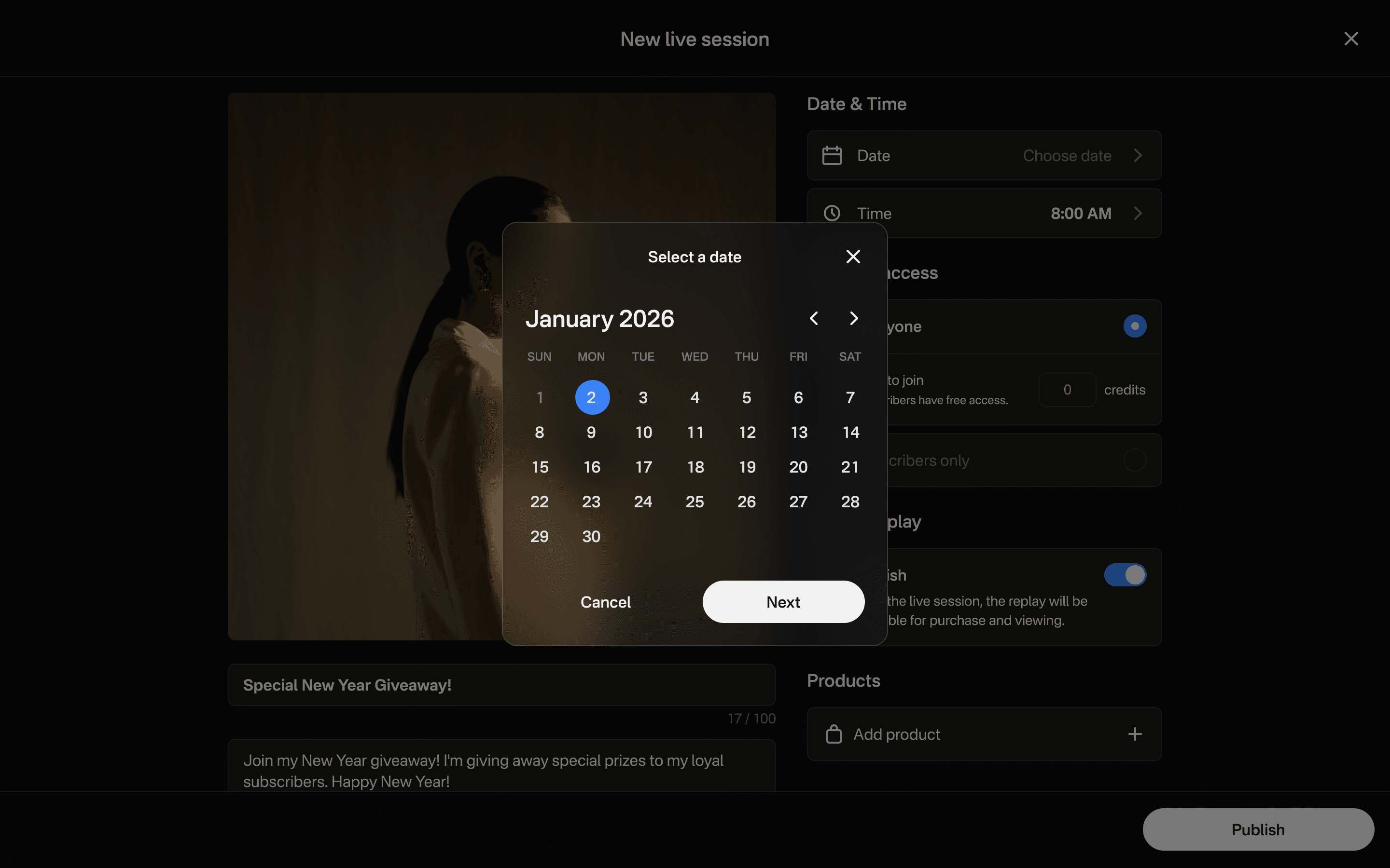 Creators schedule paid or subscriber-included "live sessions."