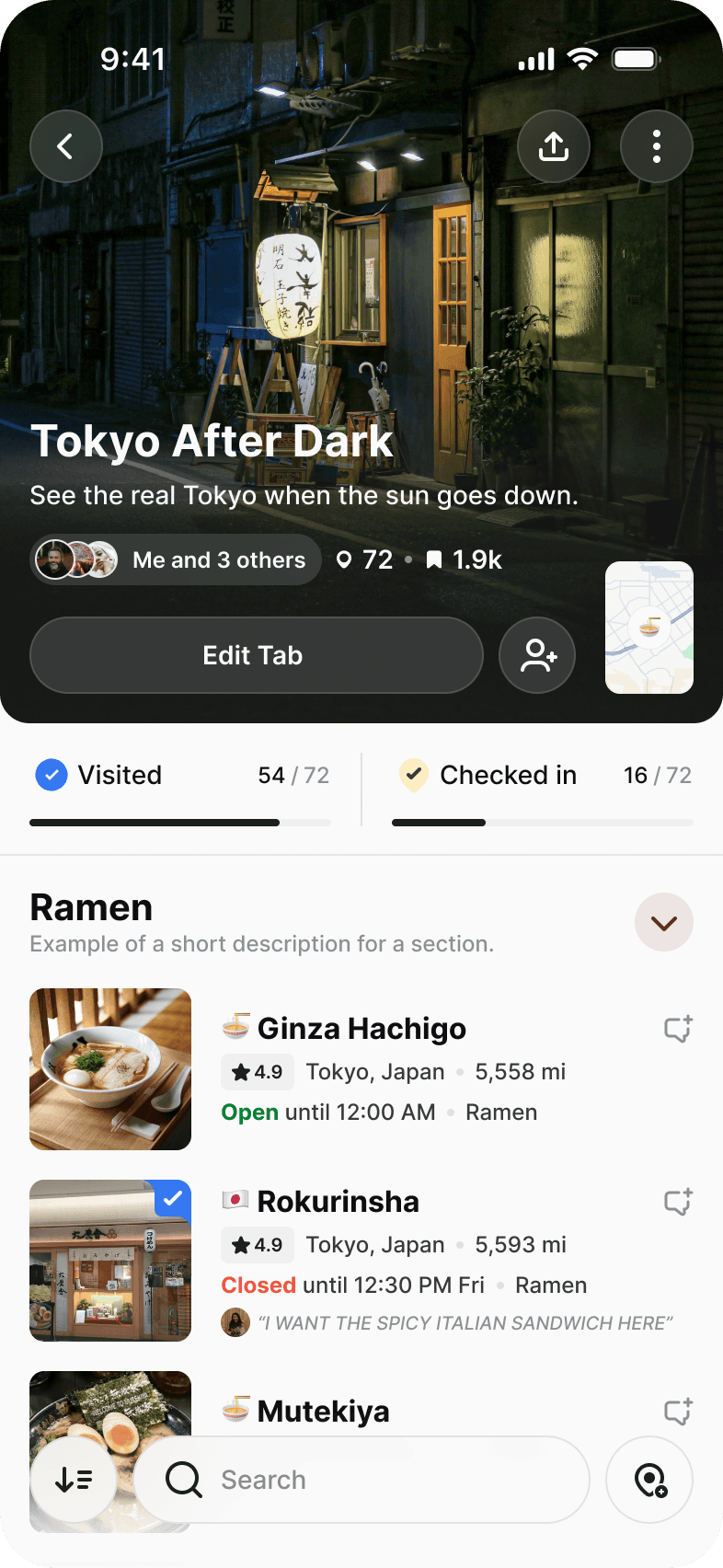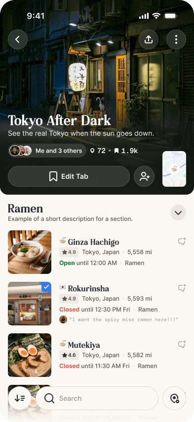 Tabi needs to allow for easy collaborative planning around saved places.